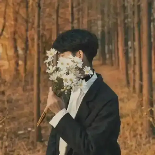森系唯美男头像半身部位,手捧花的男生